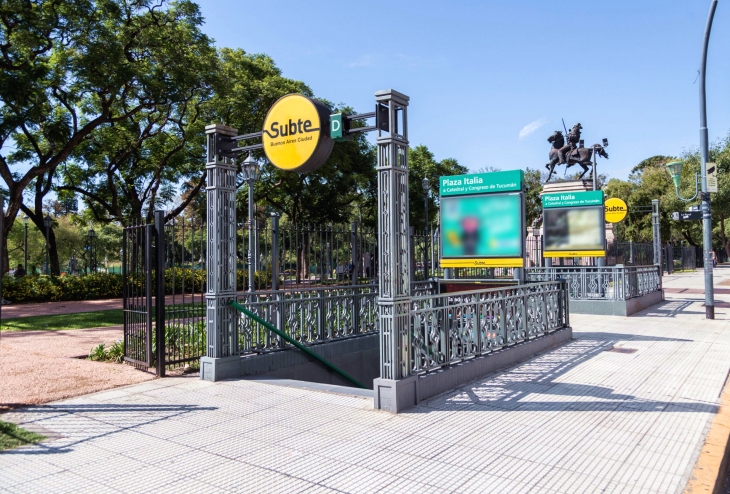 remodelación y puesta en valor de la estación plaza italia Obras en el Subte D 15/10/2025 - Desde el lunes 11 de agosto se encuentra cerrada la estación Plaza Italia de la línea "D" del subte porteño. por obras de renovación integral. Los trabajos incluyen pintura, impermeabilización, nuevo revestimiento metálico de paredes y cielorrasos en material aluzinc, recambio de pisos, nuevas luces led, mobiliario, señalética, señalización braille, restauración de murales y puesta en valor de piezas patrimoniales. Las obras se dan en el marco del Plan de Renovación Integral de Estaciones que lleva adelante Subterráneos de Buenos Aires S.E. (SBASE). El objetivo es mejorar la infraestructura y optimizar la experiencia de viaje de los usuarios. |