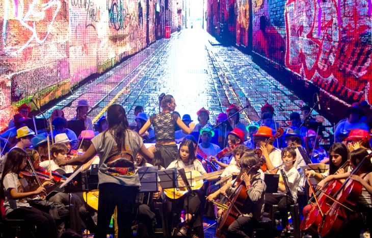 La Orquesta Escuela Juvenil de San Telmo es un proyecto social y educativo nacido en 2014 en el barrio porteño de San Telmo. Actualmente, más de doscientos cincuenta niños y jóvenes de entre tres y veinte años participan de los distintos talleres y orquestas que el programa ofrece, organizados según la edad y el proceso formativo de cada estudiante. El proyecto cuenta con un equipo de quince docentes profesionales y trabajadores sociales, y brinda un espacio de formación accesible y sin requisitos de ingreso. Allí, los integrantes reciben clases de instrumento, lenguaje musical y ensayos orquestales, además del instrumento que eligen tocar. La Orquesta Escuela se gestiona a través Templar Asociación Civil y pertenece a la Red Federal de Orquestas Juveniles de la Secretaría de Cultura. El equipo está integrado por Luz Merlo, David Scarpetta, Olga Kneeteman, Jason Cea, Cristian Aravena, Juan Sebastián Rizo, Joana Saucedo, Wilmer Vicente, Martín Arrizabalaga, Catalín Munteanu, Javier Crespín, Andres Panayoton, Pablo Borghi, Félix Fracchia y Juan Pola. Dirección musical: Ailín Benard y Clara Ackermann. |
