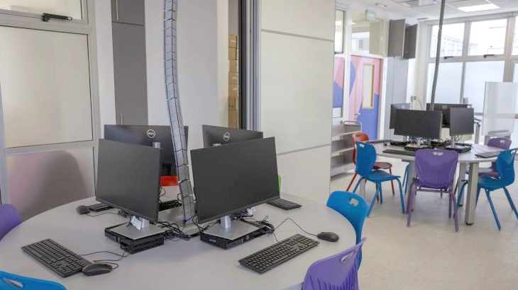 El diseño arquitectónico de la escuela rompe con el esquema tradicional de filas de pupitres mirando hacia un pizarrón. La infraestructura ha sido pensada para el "aprendizaje activo" mediante: