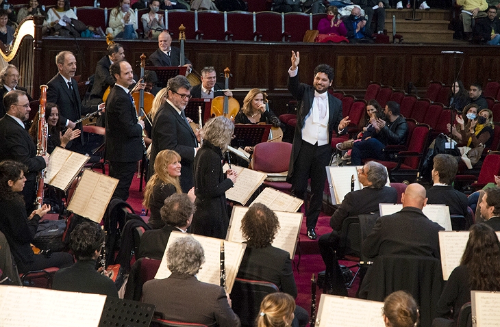 La Banda Sinfónica de la Ciudad de Buenos Aires, organismo estable de la Dirección General de Música, fue creada por iniciativa de Antonio Malvagni, experimentado director italiano de bandas, para darle a la ciudad una agrupación sinfónica de carácter permanente. Se presentó oficialmente en el Teatro Colón el 14 de mayo de 1910 para celebrar el centenario de la Revolución de Mayo. Fue dirigida por figuras de trayectoria nacional e internacional como Rafael Del Giudice, Domingo Calabró, Reinaldo Zamboni, Mariano Drago, Gerardo Gandini, Roberto Farías (Brasil), Dennis Johnson (Estados Unidos), Vito Clemente (Italia), José María Castro, Pascual Grisolía, Mario De Rose, Bernardo Teruggi, Gustavo Fontana y José Luis Cladera. A ellos se sumaron Juan José Castro, Luis Gianneo, Pedro Ignacio Calderón y Simón Blech, entre otros. En la actualidad, sus directores son los Maestros Carlos David Jaimes y Nicolás Kapustiansky. Desde sus inicios, la Banda Sinfónica de la Ciudad realiza una constante tarea de divulgación tanto en espacios abiertos, plazas y parques como en salas de conciertos y escuelas públicas porteñas, donde desarrolla una intensa labor pedagógica mediante su ciclo anual de conciertos didácticos. Carlos David Jaimes, realizó sus estudios de música en la Universidad Nacional de las Artes. Se formó en dirección orquestal con Mario Benzecry y Carlos Calleja y se perfeccionó en la Fundación Teatro Colón y el Mozarteum Argentino. Fue director adjunto de la Orquesta Académica del Teatro Colón y dirigió óperas, operetas y títulos del repertorio coreográfico junto al Ballet Nacional y director musical del Ballet Contemporáneo del Teatro San Martín. Dirigió como invitado las orquestas Académica del Teatro Colón, Filarmónica de Mendoza, Sinfónica de Santa Fe, Sinfónica de Bahía Blanca, Nacional de Música Argentina Juan de Dios Filiberto, Sinfónica Municipal de Avellaneda, Sinfónica de la Universidad Nacional de Tucumán, Nacional Juvenil de Chile, entre otras; director adjunto de la Orquesta Académica de Buenos Aires desde su creación hasta 2018 y director asistente de la Orquesta Sinfónica Municipal de Florencio Varela.