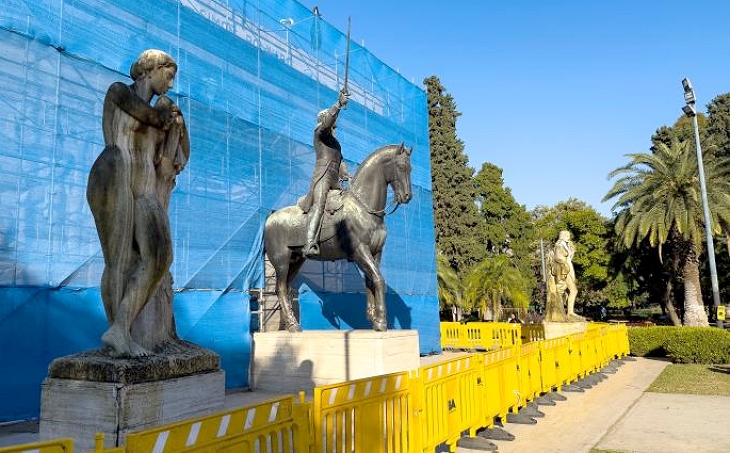La intervención está a cargo del MOA (Monumentos y Obras de Arte), el taller especializado que se encarga de la conservación y puesta en valor del patrimonio escultórico y monumental de la Ciudad. El monumento se ubica en el corazón de uno de los espacios verdes porteños más emblemáticos. El conjunto está constituido por una figura ecuestre de Bolívar en bronce fundido, un gran arco de mármol blanco, con cuatro bajorrelieves y dos esculturas femeninas de mármol tallado que representan, alegóricamente, a “La Inspiración” y “La Gloria”. La inscripción principal dice: “A Simón Bolívar, la Nación Argentina”. Durante un tiempo, entre dos y cinco restauradores del MOA estarán trabajando de lunes a viernes sobre el monumento. La restauración comienza con una limpieza mecánica en seco: se utilizan pinceles, bisturíes y lecrones para remover incrustaciones superficiales. También se retira vegetación invasiva que pueda dañar la estructura. Luego se realiza una limpieza química que consiste en la desalinización mediante el uso de compresas de agua desmineralizada y cepillado, y la aplicación de un biocida para prevenir la presencia de organismos que puedan dañar los materiales. Este tratamiento se completa con un cepillado cuidadoso adicional y un enjuague final. Luego, se llevan a cabo tareas de nivelación y consolidación estructural de la obra: se aplican anclajes en las placas de revestimiento superiores. Para esto se colocan pernos de acero inoxidable, cubiertos con mortero de cemento coloreado y aditivado. Con mortero de cal aérea se tomarán las juntas entre placas de revestimiento y toda la estructura será protegida con un hidrorepelente a base de silano/siloxano, aplicado por aspersión. Los relieves del arco serán tratados con la misma metodología. En cuanto a la figura ecuestre central, se mantendrá sin intervención, ya que presenta una pátina estable. Solo se retirarán grafitis que hay en la parte inferior. El monumento a Bolívar está emplazado sobre una gran explanada, punto de encuentro típico para cualquier vecino que visita el Parque Rivadavia. Es un espacio de uso cotidiano, donde los chicos juegan a la pelota o andan en bicicleta, donde a veces hay clases y shows de baile y donde suelen instalarse los fines de semana puestos de las Ferias Especiales de la Ciudad, que ofrecen productos de calidad a buenos precios. La obra fue realizada por el escultor José Fioravanti, quien participó también de otras grandes obras monumentales de la Argentina, como el Monumento a la Bandera en Rosario y los icónicos lobos marinos de Mar del Plata. Con esta intervención, la Ciudad avanza en la mejora de las condiciones de conservación de una obra escultórica de gran escala y valor histórico, ubicada en uno de los espacios verdes más visitados del barrio de Caballito.