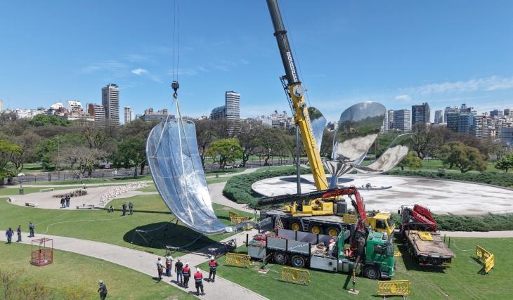 Con un megaoperativo, comenzó la etapa final de la restauración de la Floralis Reparan la Floralis Genérica 27/10/2025 - La Floralis Genérica está cada vez más cerca de volver a brillar completa. Hace apenas unos días, la Ciudad concretó un megaoperativo para trasladar e instalar el primero de los dos pétalos restaurados de la icónica escultura porteña. La pieza, de más de tres toneladas de aluminio y acero, debió realizar una travesía de alta complejidad logística y recorrer 150 kilómetros a bordo de una barcaza, por el río Paraná, para volver a unirse con la estructura principal de la flor en la Plaza de las Naciones Unidas. En noviembre se trasladará el segundo pétalo, para que la Floralis vuelva a lucir completa luego de haber sido averiada por un temporal (diciembre de 2023). |