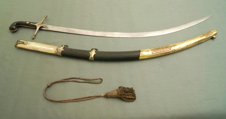 El sable posee una hoja de acero de Damasco, de aproximadamente 100 años de antigüedad al momento de ser adquirido. Lo que caracteriza al acero de Damasco es su calidad, filo, resistencia y ligereza. La empuñadura es de madera de ébano y su vaina está recubierta en cuero y bronce. Se cree que San Martín habría sido el primero en introducir este tipo de arma en América del Sur, y según su propia declaración, el sable lo acompañaría en toda la guerra por la Independencia de América del Sud. Cuando el general San Martín deja la campaña libertadora, que continúa al mando de Simón Bolivar, regresa del Perú y debe emprender su exilio a Europa en 1824. El sable corvo queda en Mendoza al cuidado de doña Josefa Ruiz Huidobro. Recién en 1837 cuando San Martín estaba en Francia, y mientras su hija y su yerno Mariano Balcarce se encontraban de viaje por el Río de la Plata, San Martín les escribió desde París solicitando “...traigan mi sable corvo, que me ha servido en todas las campañas en América y servirá para algún nietecito si es que lo tengo”. Desde el momento en que su hija le hizo entrega del sable, San Martín lo tuvo colgado en su cuarto, como señalaron muchos de quienes lo visitaron. En su último y definitivo testamento, fechado en París el 23 de enero de 1844, San Martín dispone en su cláusula tercera que: “El sable que me ha acompañado en toda la guerra de la independencia de la América del Sud le será entregado al General de la República Argentina, Don Juan Manuel de Rosas, como una prueba de la satisfacción que como argentino he tenido, al ver la firmeza con que ha sostenido el honor de la República contra las injustas pretensiones de los extranjeros que trataron de humillarla...”. Así, Rosas lo recibió luego del 17 de agosto de 1850, fecha de fallecimiento del Libertador, mediante el envío que hace del arma Mariano Balcarce. Juan Manuel de Rosas conservó el arma como una reliquia: la depositó dentro de un cofre en cuya tapa hizo colocar una placa de bronce donde mandó grabar la famosa cláusula testamentaria. Con el exilio de Rosas en Inglaterra luego de la Batalla de Caseros, el sable lo acompañará a Southampton. Hasta que al morir Rosas en 1877, retorna a su presunto lugar de origen en Londres. Luego conforme al Art. 18ª del testamento de Rosas, el sable llegó a manos de su hijo político Máximo Terrero que vivía en la capital inglesa junto a su esposa Manuelita Rosas. Allí en su casa de Londres estuvo casi 20 años ocupando un sitio de honor, hasta que en 1896 (dos años antes que Manuelita falleciera) Adolfo P. Carranza (fundador y primer director del Museo Histórico Nacional) le escribe solicitando la donación del sable. Manuelita contestó afirmativamente, señalando que su esposo (el verdadero legatario), había decidido donar a la Nación Argentina “ese monumento de gloria para ella”, contando con su entera aprobación y la de sus hijos Manuel Máximo y Rodrigo Tomás. Poco después, el 4 de marzo de 1897, el sable pasa a formar parte del patrimonio del Museo. Fuente: Museo Histórico Nacional |